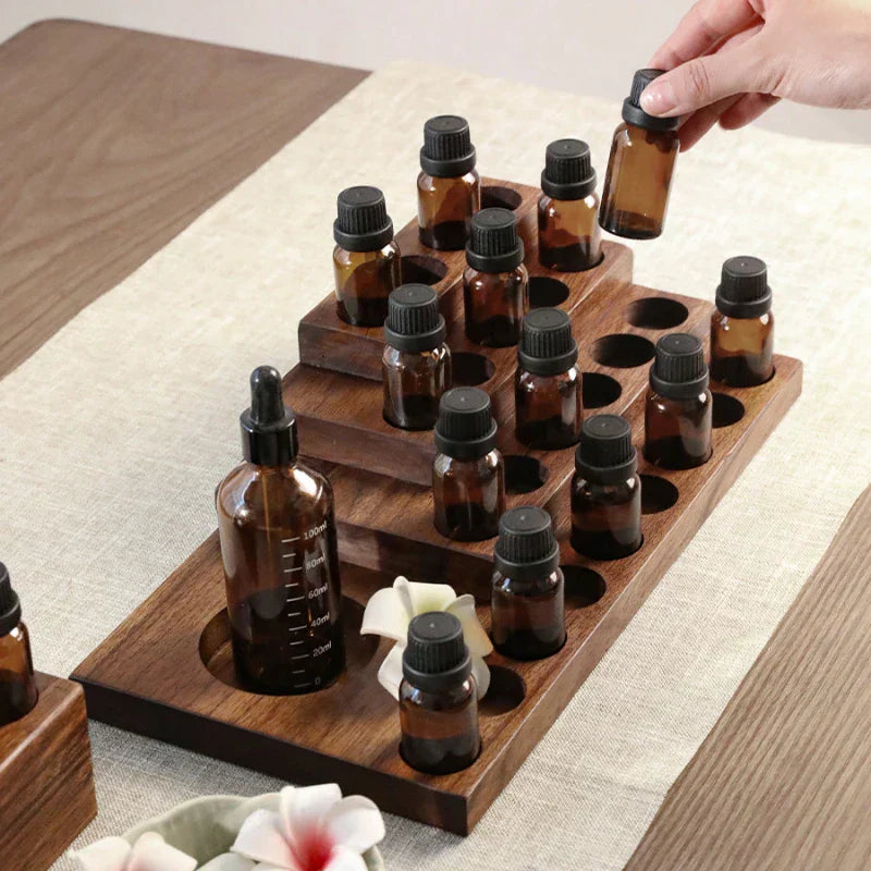 Crafted from high-quality wood, this storage rack is durable and sturdy and adds a touch of rustic charm to any space. The natural wood finish enhances the beauty of the oils on display, creating a visually appealing and calming atmosphere. The rack's vintage design makes it a stylish addition to any home, while its functional layout ensures that your oils are stored securely and without risk of tipping over.